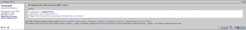 Конечно я бы тоже не отказался если бы мой сайт попал в этот каталог, и решил спросить достоин ли мой блог,быть в этом каталоге, у редакторов (узнать мнение редакторов можно на форуме searchengines.guru в этой ветке):
